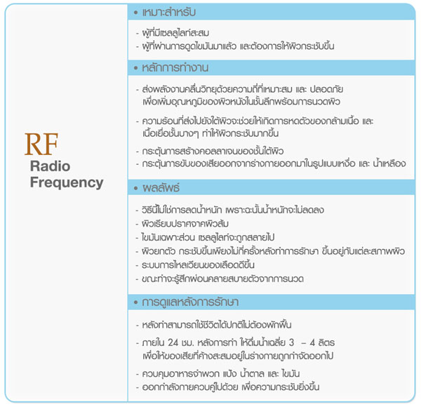 1.RF (Radio Frequency) การนวดสลายไขมันเพื่อผิวเรียบกระชับ