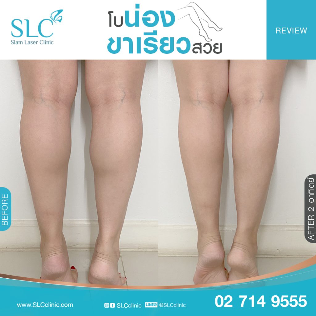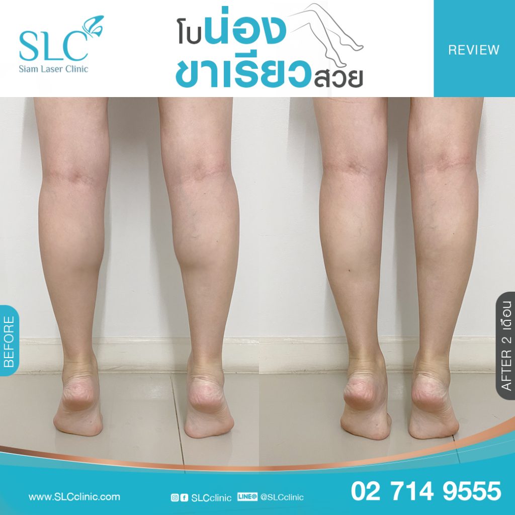 -และวิธีสุดท้ายได้ผลเร็ว เห็นผลที่ชัดเจน คือ การฉีดน่องให้เล็กลง ด้วยการใช้สารโบทูลินั่ม ท็อกซิน (Botulinum toxin) หรือโบท็อกซ์ การลดกล้ามเนื้องน่องด้วยการฉีดสารสกัดจากโปรตีนบริสุทธิ์ ช่วยในการลดกล้ามเนื้อ และจะช่วยคลายกล้ามเนื้อที่หดตัวให้อ่อนลง ร่วมถึงการปรับลดเลือนริ้วรอยต่าง ๆ ให้ผิวเรียบเนียนขึ้นได้ ซึ่งกล้ามเนื้อที่เล็กลงนั้นจะเป็นในส่วนของกล้ามเนื้อ Gastrocnemius (Calf Muscle) ซึ่งเป็นกล้ามเนื้อที่ไม่มีผลกระทบกับการใช้ชีวิตประจำวัน