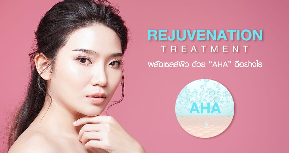 สร้างเสริมความกระจ่างใสสู่ผิวหน้า ผลัดเซลล์ผิว ด้วยกรดผลไม้จากธรรมชาติความจริงแล้วเซลล์ผิวที่ตายแล้วสามารถหลุดลอกออกไปเองได้ แต่ด้วยอายุสภาพแวดล้อม สุขภาพ และการแต่งหน้าบ่อย ๆบางครั้งอาจทำให้กระบวนการผลัดเซลล์ผิวไม่เป็นไปตามปกติ ดังนั้นเราสามารถใช้ AHA ช่วยได้เมือผลัดเซลล์ผิวเก่าที่ตายออกไปแล้ว ทำให้ชั้นผิวใหม่เกิดขึ้นมาแทนที่ได้ดีขึ้นชั้นผิวที่เกิดใหม่จะหนาขึ้นดูสดใสขึ้น เพิ่มความชุ่มชื้น และปรับสมดุลค่าพีเอส ให้แก่ผิว ป้องกันสิว ฝ้า กระ จุด ด่างดำ เรียกได้ว่า พร้อมเผยผิวใหม่ที่สดใสยิ่งกว่าเดิม ด้วย โปรแกรม “Rejuvenation Treatment”