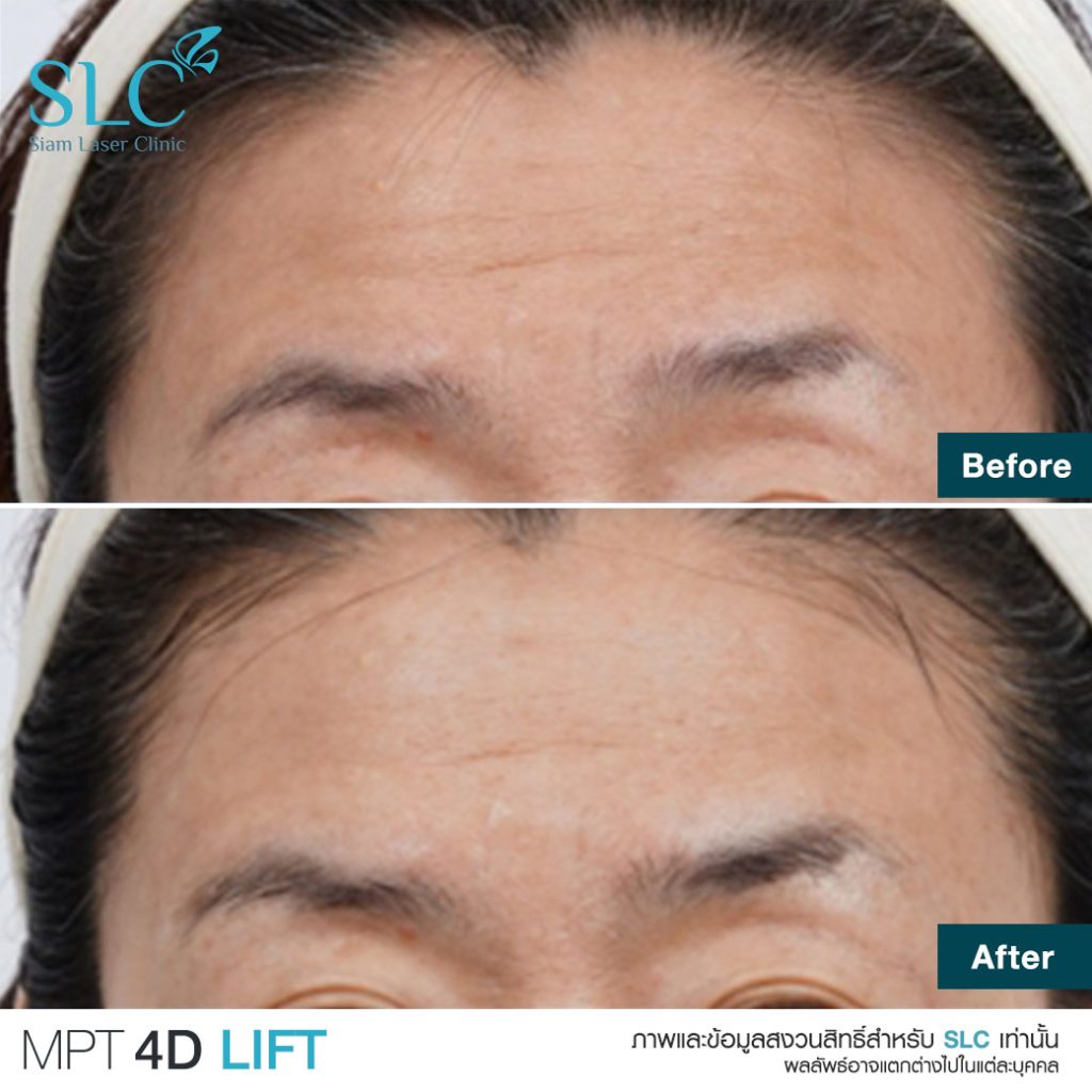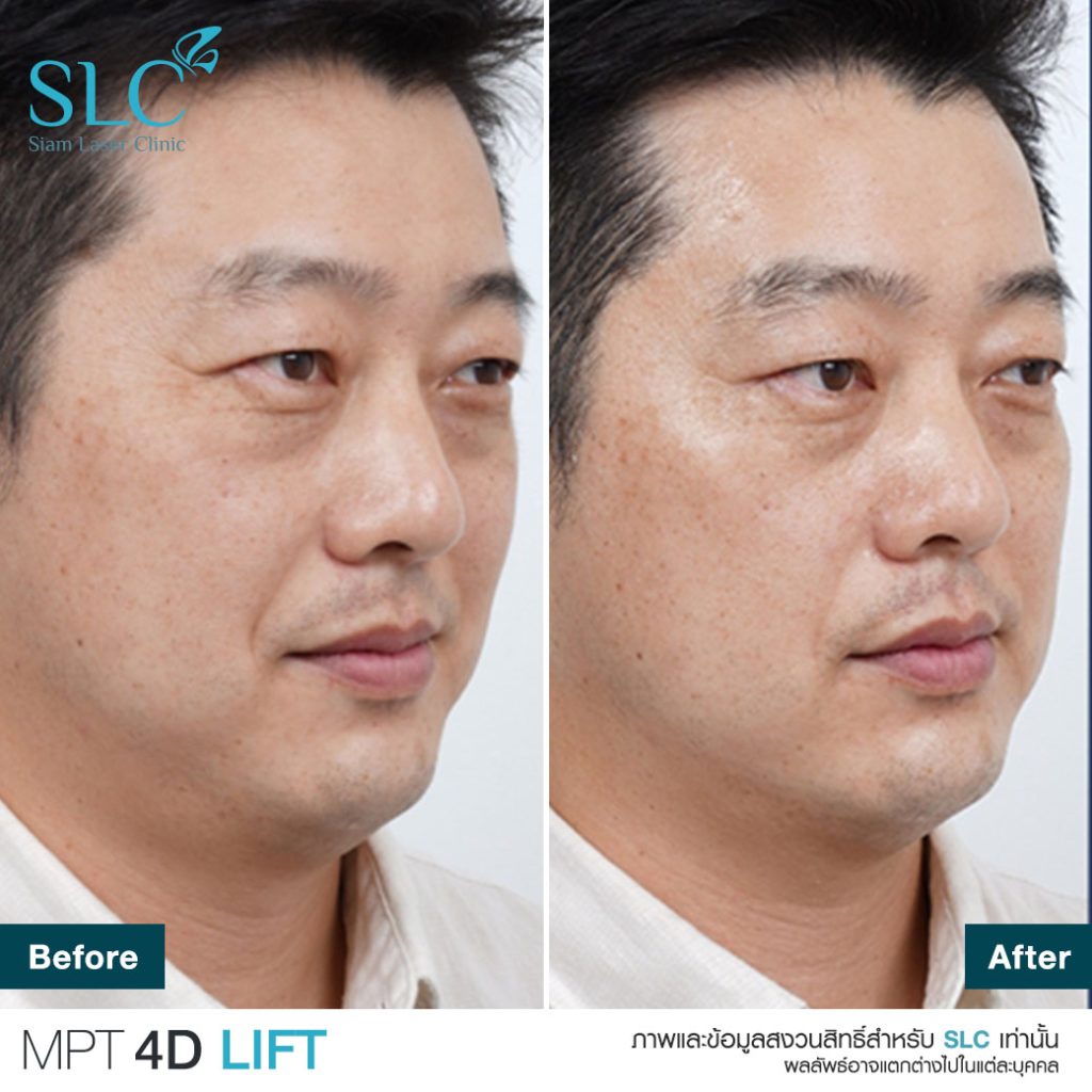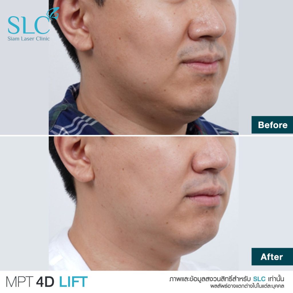 - โปรแกรม MPT 4D Lift (Micro Pulsed Technology) จากเกาหลี ยิงเร็ว เจ็บน้อย ลงลึกได้หลายมิติ มีหัวเครื่องตั้งแต่ 1.5-13 mm จึงปรับระดับการรักษาให้ตรงจุด ทั้งสลายไขมันใต้คาง ยกคิ้ว ยกมุมปาก และกระชับผิวลำตัวบางจุด (ผลลัพธ์ขึ้นกับแต่ละบุคคล)