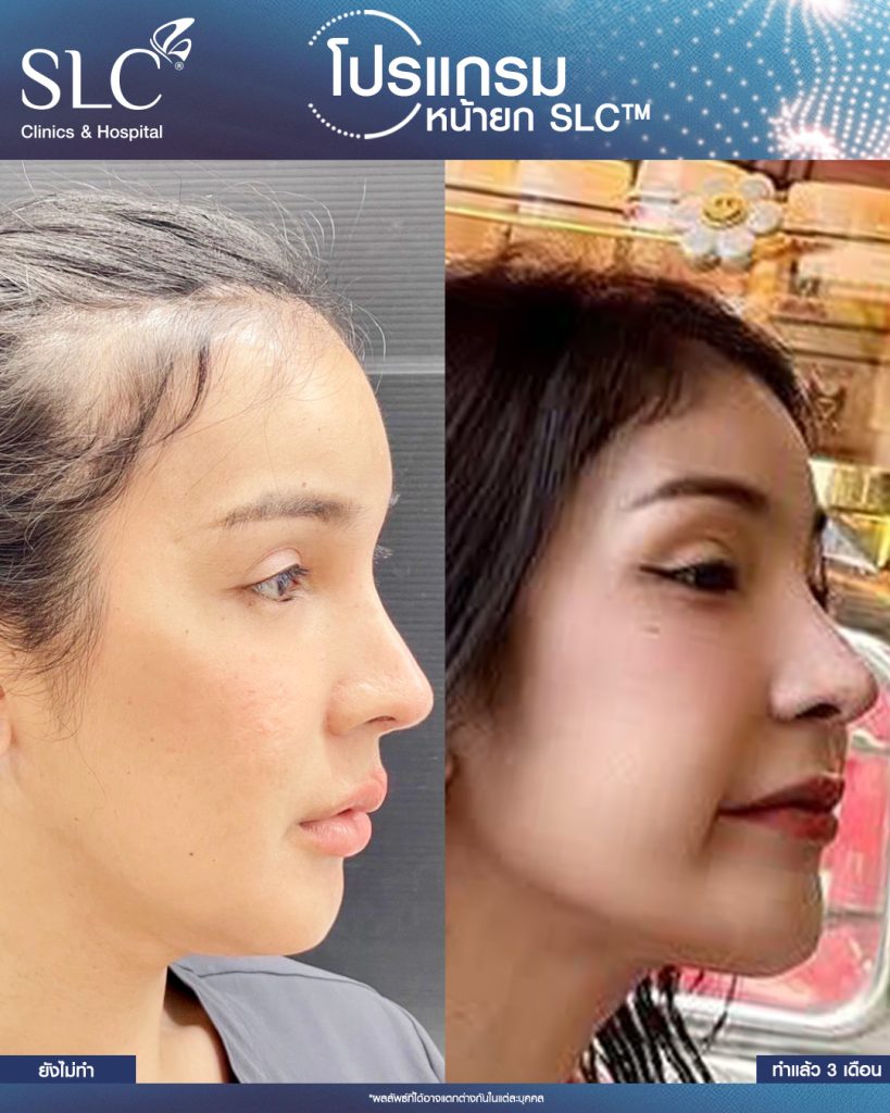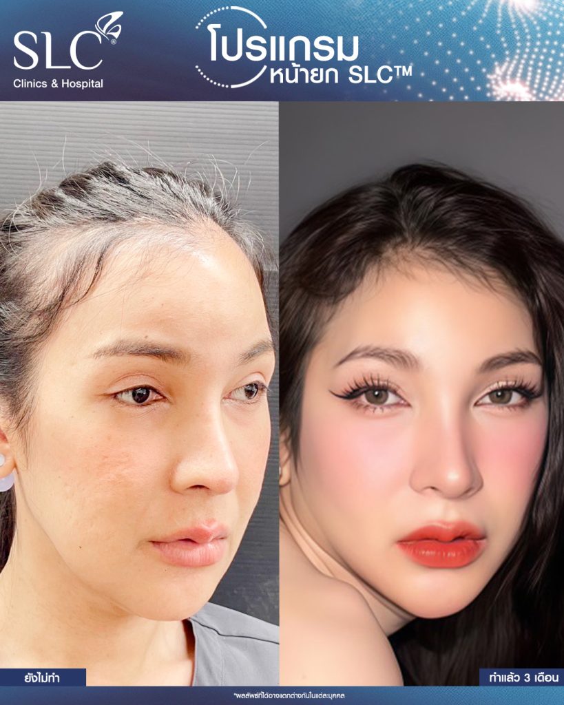 - ผลลัพธ์สองต่อ เติมเต็ม + ฟื้นฟู โปรแกรมหน้ายก SLC ไม่ใช่แค่เติมเต็มเหมือนฟิลเลอร์ทั่วไป แต่ยังช่วยฟื้นฟูโครงสร้างผิวลึกถึงระดับเซลล์