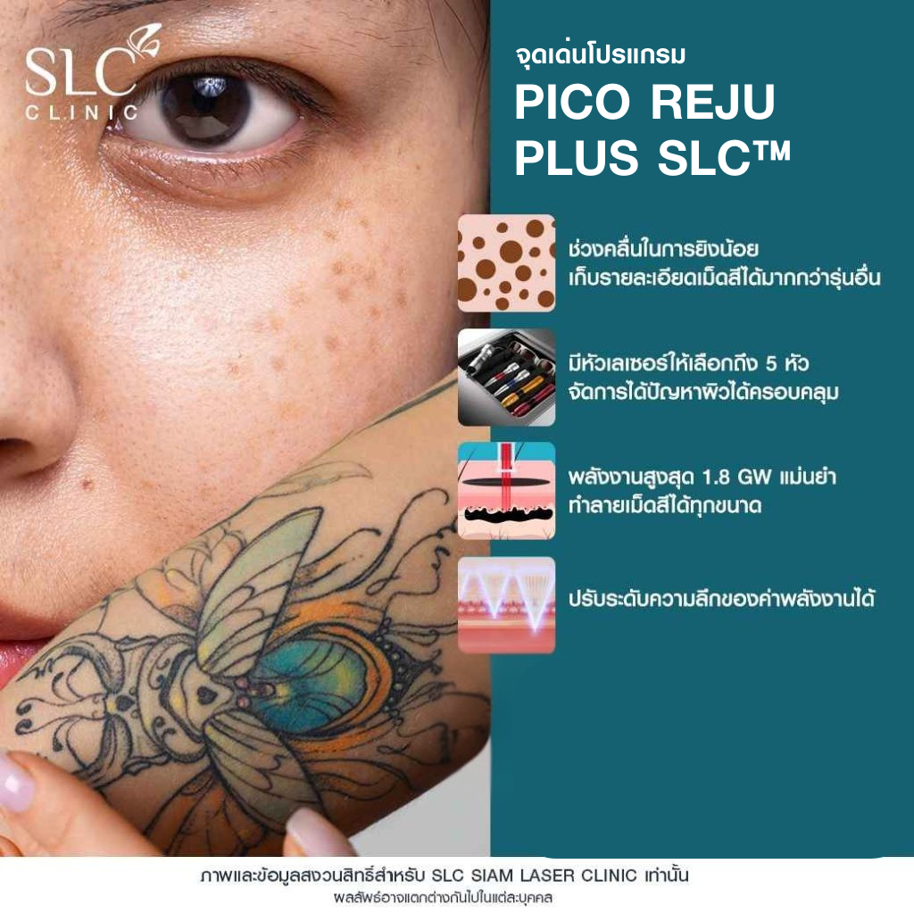 โปรแกรม Pico Reju Plus SLC™ หรือ Pico Laser เป็นทางเลือกที่ดีสำหรับคนที่มีปัญหาผิวหลากหลาย ไม่ว่าจะเป็นฝ้า กระ รอยสิว หลุมสิว รูขุมขน หรือแม้แต่การลบรอยสัก ด้วยเทคโนโลยี Picosecond ที่ใช้คลื่นกระแทกแทนความร้อน พร้อม 4 ความยาวคลื่นและ 5 หัวยิงเฉพาะทาง ทำให้แก้ปัญหาได้ตรงจุด เห็นผลชัด ที่สำคัญคือไม่ทำให้ผิวบางตามที่หลายคนเคยกังวล