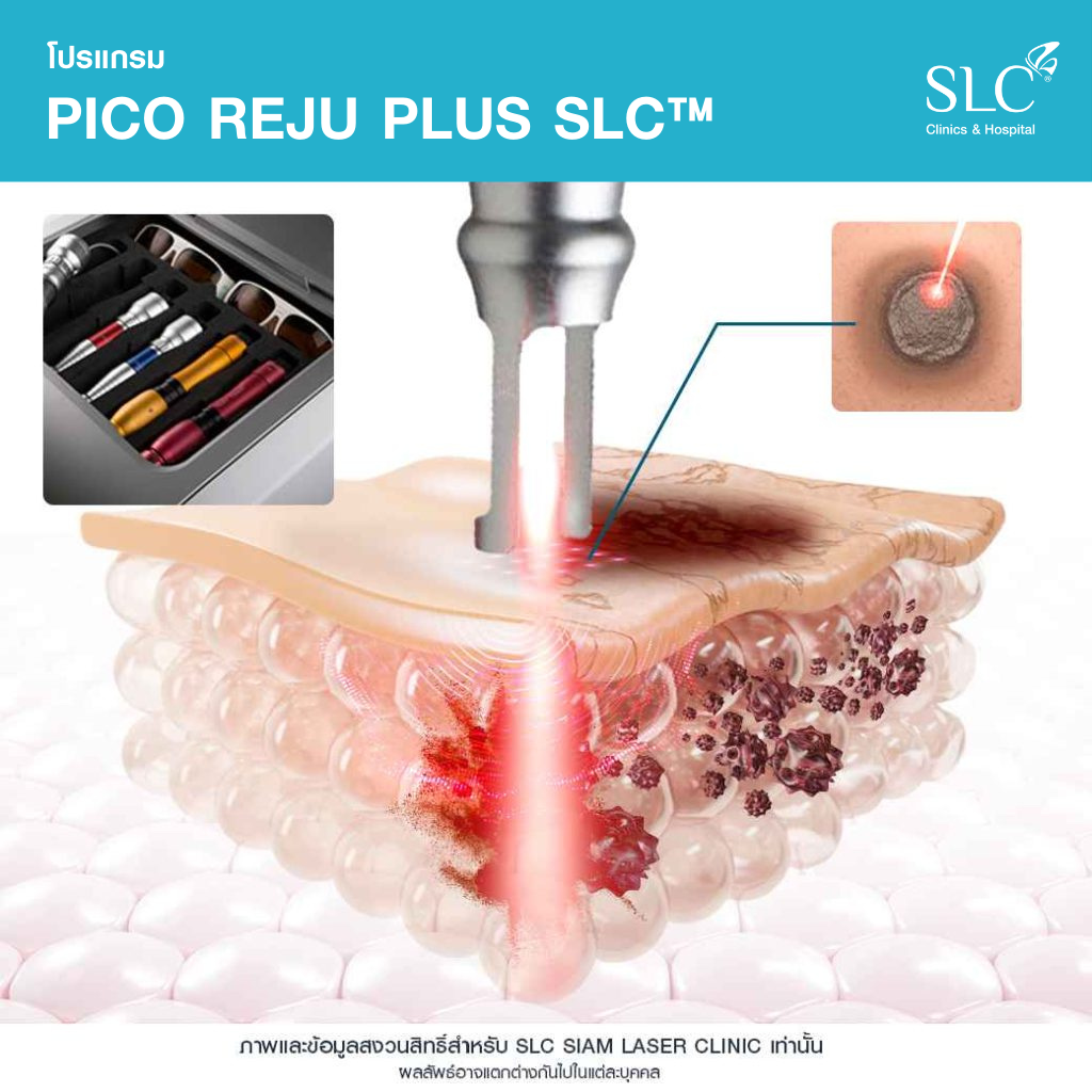โปรแกรม Pico Reju Plus SLC™ (Pico Laser) เป็นเทคโนโลยีเลเซอร์แบบ Picosecond Laser ที่โดดเด่นด้วยการใช้พลังงานแบบสั้นและแม่นยำในระดับ 1 ต่อล้านล้านวินาที (Picosecond) หรือ 450 ps ซึ่งเร็วกว่าเลเซอร์รุ่นเก่าหลายเท่า