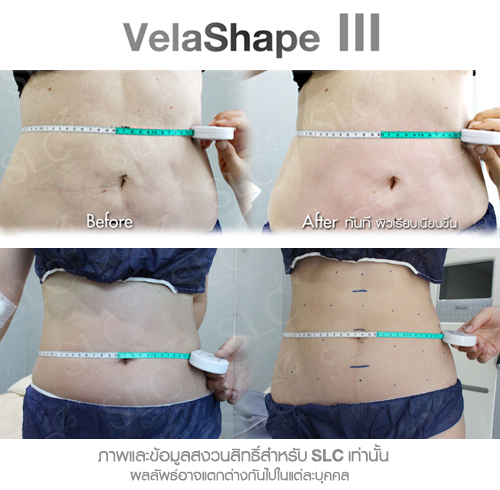 Vela Shape III การใช้เทคโนโลยีร่วมกัน ระหว่างการทำงานของแสงอินฟาเรด (IR) คลื่นวิทยุความถี่สูงแบบ 2 ขั้ว (Bi-Polar RF) แรงดูดสุญญากาศ (Vacuum) และ ตัวนวดผิว (Tissue Manipulation) โดยจะมีการสะสมความร้อนใต้ผิวหนังให้อุณหภูมิถึงจุดที่เห็นผลที่ต้องการรักษาได้อย่างรวดเร็ว มีผลการทำลายเซลล์ไขมัน ผู้รับบริการจะได้รับความรู้สึกคล้ายถูกนวดและอุ่นๆที่ผิวหนัง และอาจจะรู้สึกรู้สึกอุ่นๆใต้ผิวหนังจากการรักษาต่อเนื่องประมาณ 30 นาที – 1 ชั่วโมง เนื่องจากจะมีการเผาผลาญไขมันอย่างต่อเนื่อง สามารถทำได้ทุกสีผิว ไม่มีผลข้างเคียงทั้งระยะสั้น และ ระยะยาวเหมาะสำหรับผู้ที่ได้ทำการดูดไขมัน หรือ ผู้ที่มีปัญหาไขมันส่วนเกินหลังคลอด