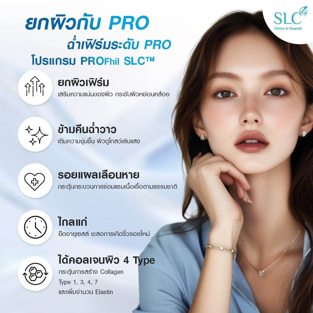 โปรแกรม PROfhil SLC™ เป็นหัตถการฟื้นฟูผิวที่กำลังเป็นที่นิยมในระดับสากล ช่วยบูสต์ผิวให้กลับมา อิ่มฟู กระจ่างใส และดูอ่อนเยาว์อย่างเป็นธรรมชาติ เหมาะสำหรับผู้ที่ต้องการเห็นผลลัพธ์ที่รวดเร็วตั้งแต่ครั้งแรก โดยไม่ต้องพักฟื้นนาน