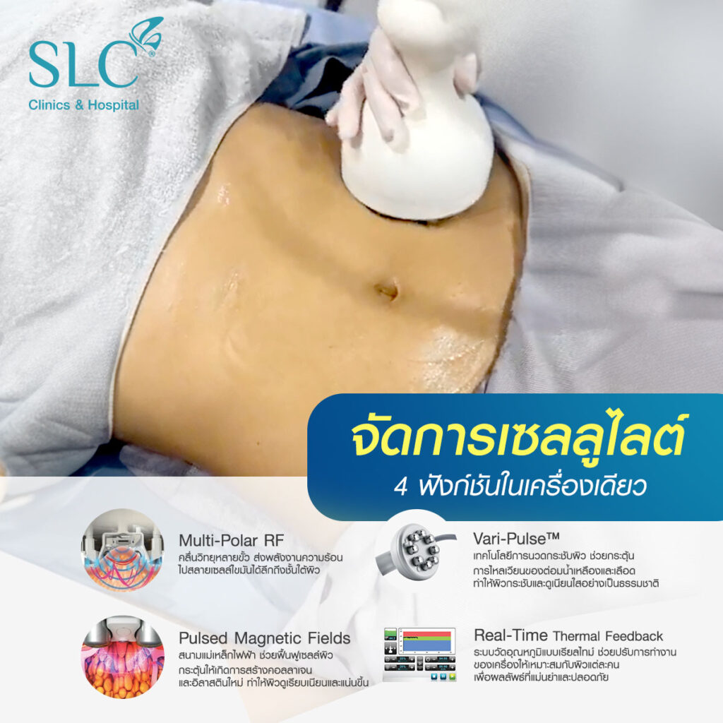 • ใช้เทคโนโลยี RF ร่วมกับระบบดูดสุญญากาศ (Pulsed Magnetic Field + Multi-Polar RF)